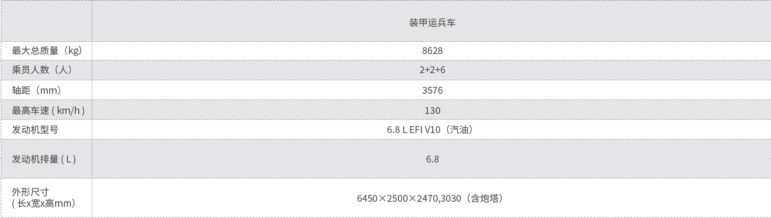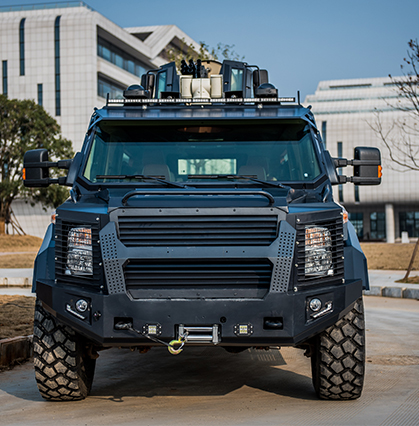 配備防彈車窗、射擊孔、天窗炮塔等裝備,可選裝九管發射器、聲波驅散器等,具備一定的反恐突擊能力。