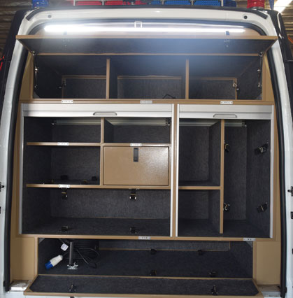 整車裝備柜集成存儲多種警用裝備等專業設施,使整車成為一個移動式機動作戰單元。