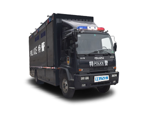 車輛前部設有長排警燈,箱體四周配有方形爆閃燈,箱體頂部設有場地照明燈。