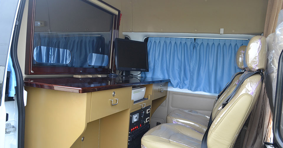 車輛內置辦公系統和監控系統,為人員提供專業化的作業環境: