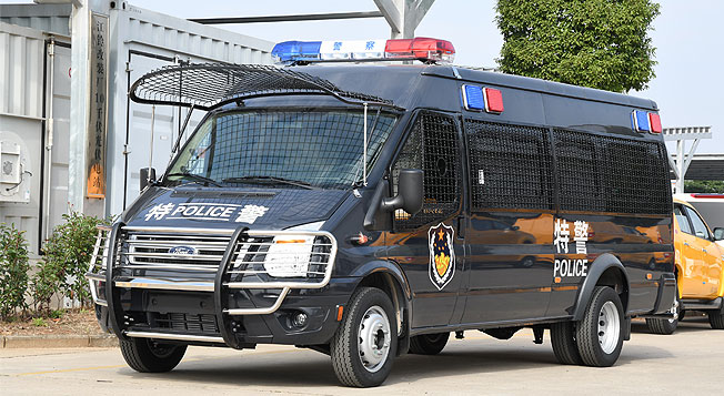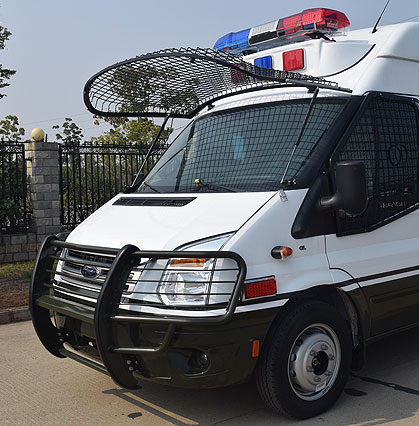 全車車窗配備鋼制高強度防護網,前擋防護網能夠手動掀開和關閉,可選裝電動開合方式;車輛前后安裝保險杠,具備一定沖撞能力,兩側裙邊加裝鋼制倒刺。