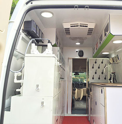 配備車載空調、車載冰箱、照明燈、換氣扇等,車上作業環境舒適。