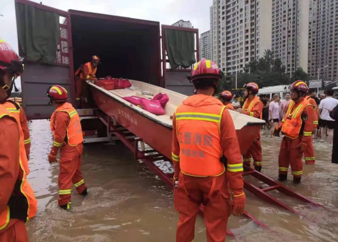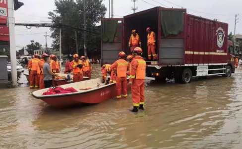 7月21日,江西省消防救援總隊調集南昌、景德鎮、九江、鷹潭、撫州5個支隊共392名消防專業救援力量及其保障編隊、救援車輛、舟艇,并攜帶相關救援設備,奔赴河南。