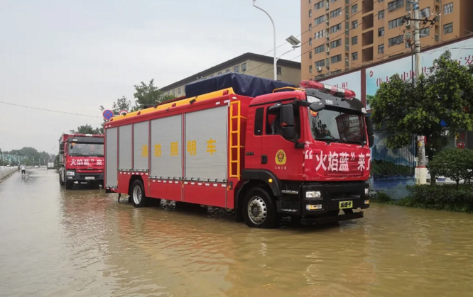 受暴雨影響,河南一些地方已經斷水斷電數日,發電照明車的抵達,可為黑暗中救援現場提供夜間照明、同時可兼作現場應急電源,為通訊、廣播宣傳和破拆器具提供電源,保障救援現場。