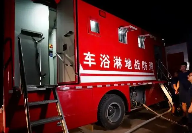 淋浴車上自帶燃油熱水鍋爐,可持續5小時供熱洗澡,讓前線救援人員休息時,洗上熱水澡。