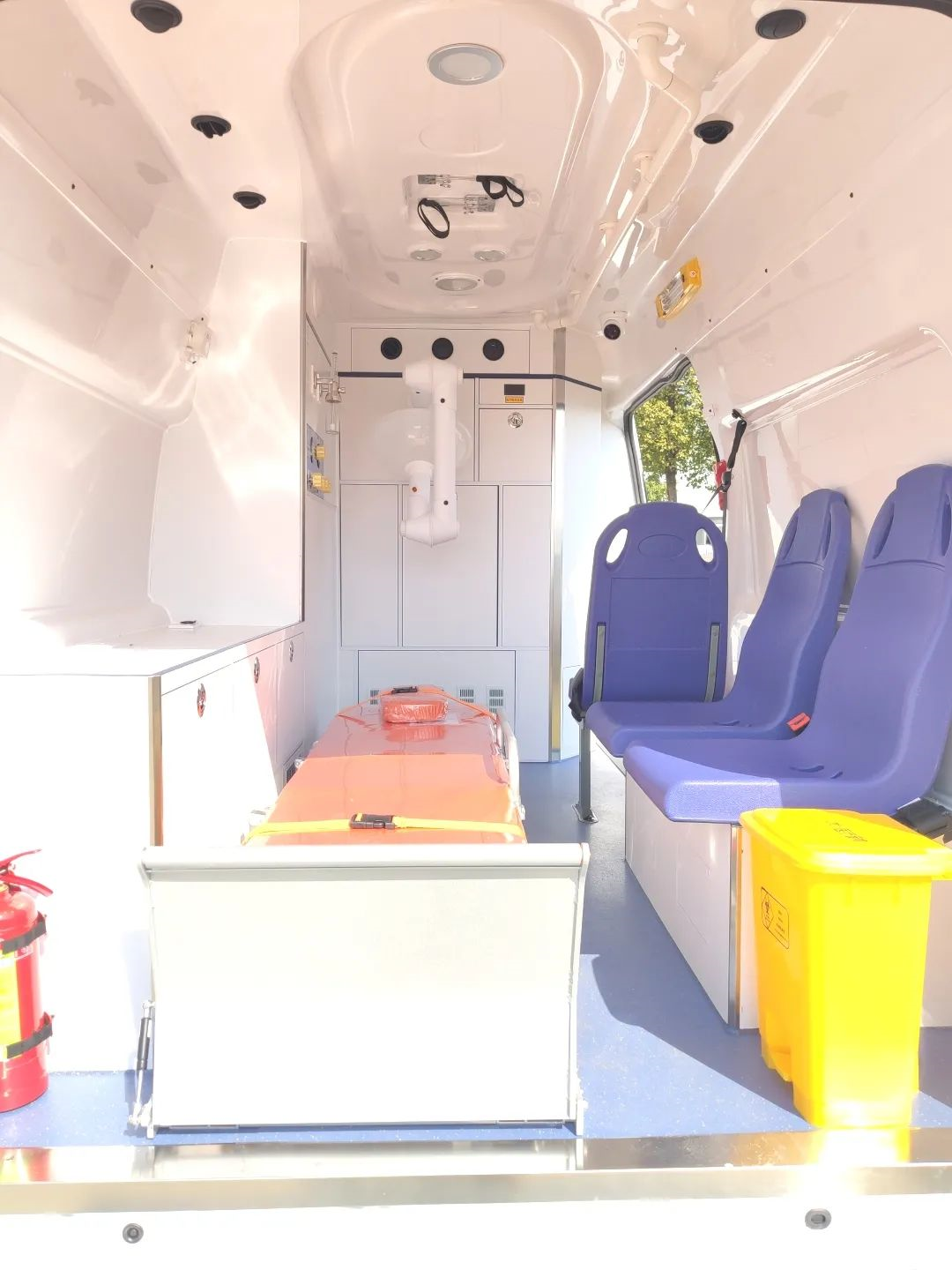 第二重防護是負(fù)壓擔(dān)架艙,艙內(nèi)會形成一個定向的空氣流場,再次將病人與隨車醫(yī)護人員隔離,擔(dān)架艙內(nèi)的氣體在負(fù)壓作用下再經(jīng)過無害化處理后排出;