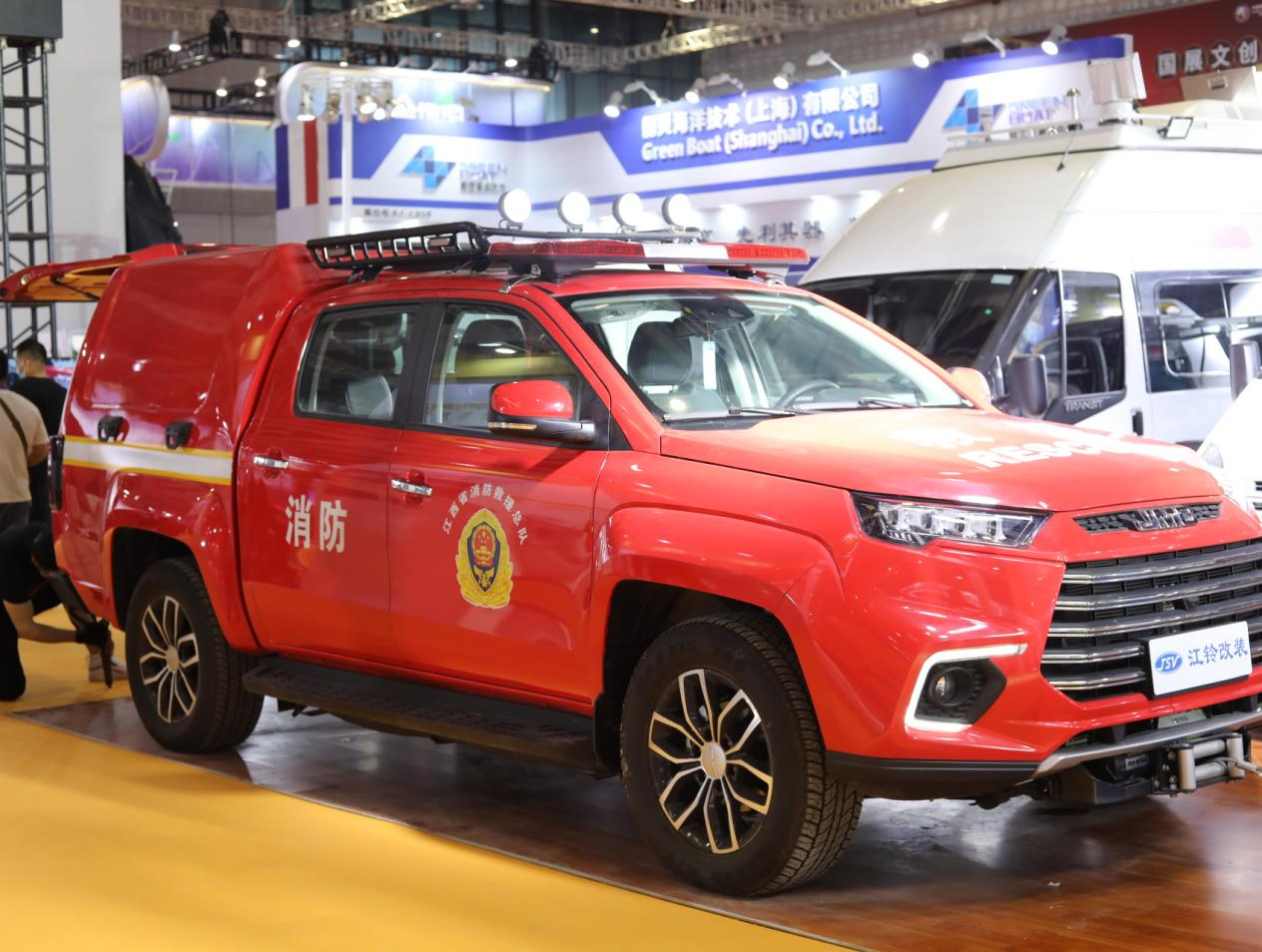 作為首屆長三角國際應急博覽會,此次展會的參展企業中有中航工業、中船工業、中國安能、中國電科、中國航天等一大批“中”字頭企業集團,也有華為科技、商湯科技等新興“獨角獸”企業;有上海本地企業,也有行業代表性企業。在眾多參展企業中,JSV江鈴改裝展臺一經亮相便吸引各方大力關注,觀展人士紛紛駐足觀看演示,聆聽介紹,并交口稱贊。