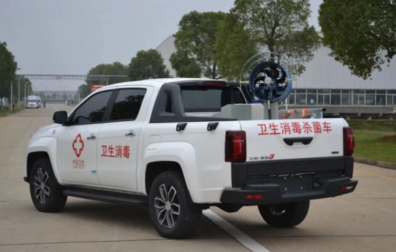 江鈴域虎皮卡移動消殺車由江鈴域虎9改裝而成,專門針對企業(yè)、工廠、小區(qū)、學校等室外人員活動場合的消毒作業(yè)。可以應對各種地形的域虎9搭配專業(yè)的消毒設備,稱得上是疫情防控的一把好手。