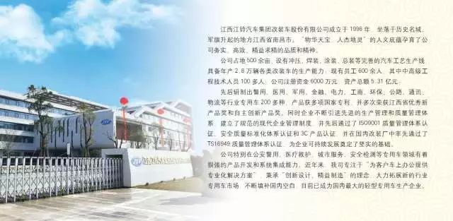 江鈴改裝1996年成立,回首21載,秉承“為客戶車上工作、生活提供專業化解決方案和服務”的定位,精益制造,連創佳績。